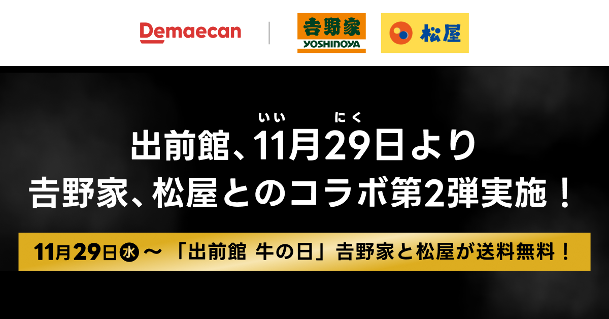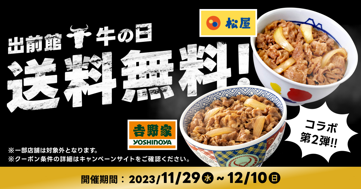 『出前館』、吉野家×松屋 「牛の日」キャンペーンを11月29日(いい肉の日)から開催!