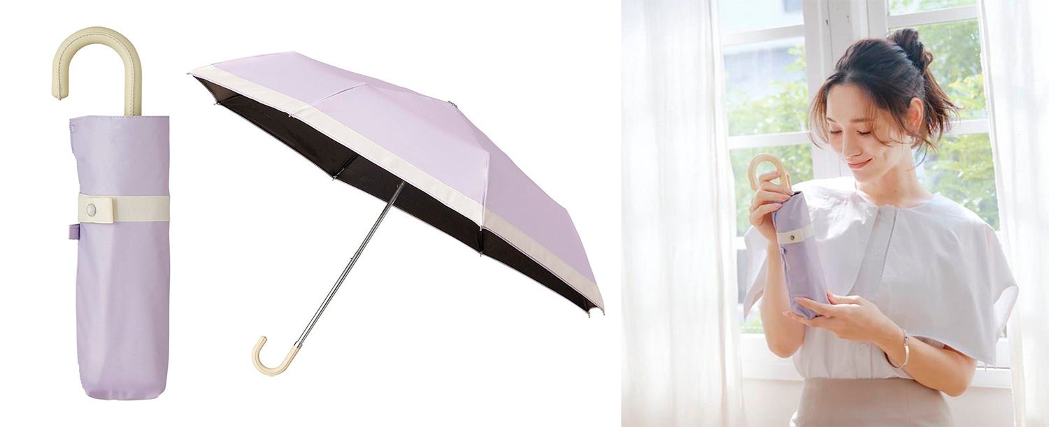 「遮夏」シリーズでお気に入りのカラーは「ラベンダー」。アイメイクやリップなどコスメカラーに青みピンク系を使用するので色味が合っていてよかった!淡い色できれいで、持ってみたいと思わせてくれるカラーだと傘選びも楽しい。