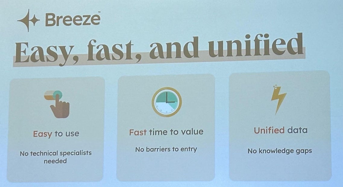 AIの加速化により、顧客の行動やHubSpotの機能が変わっていく中で、今後も変わらないことは、顧客は常に「簡単さ、使いやすさ(Easy)」、投資したものへの「即効性(Fast)」、常に「一元化されたデータ(Unified)」を求めていることである。