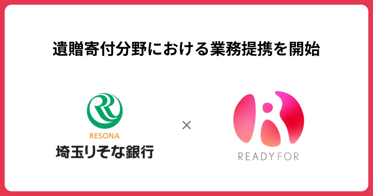 READYFOR、埼玉りそな銀行と 「遺贈寄付」分野における業務提携を開始