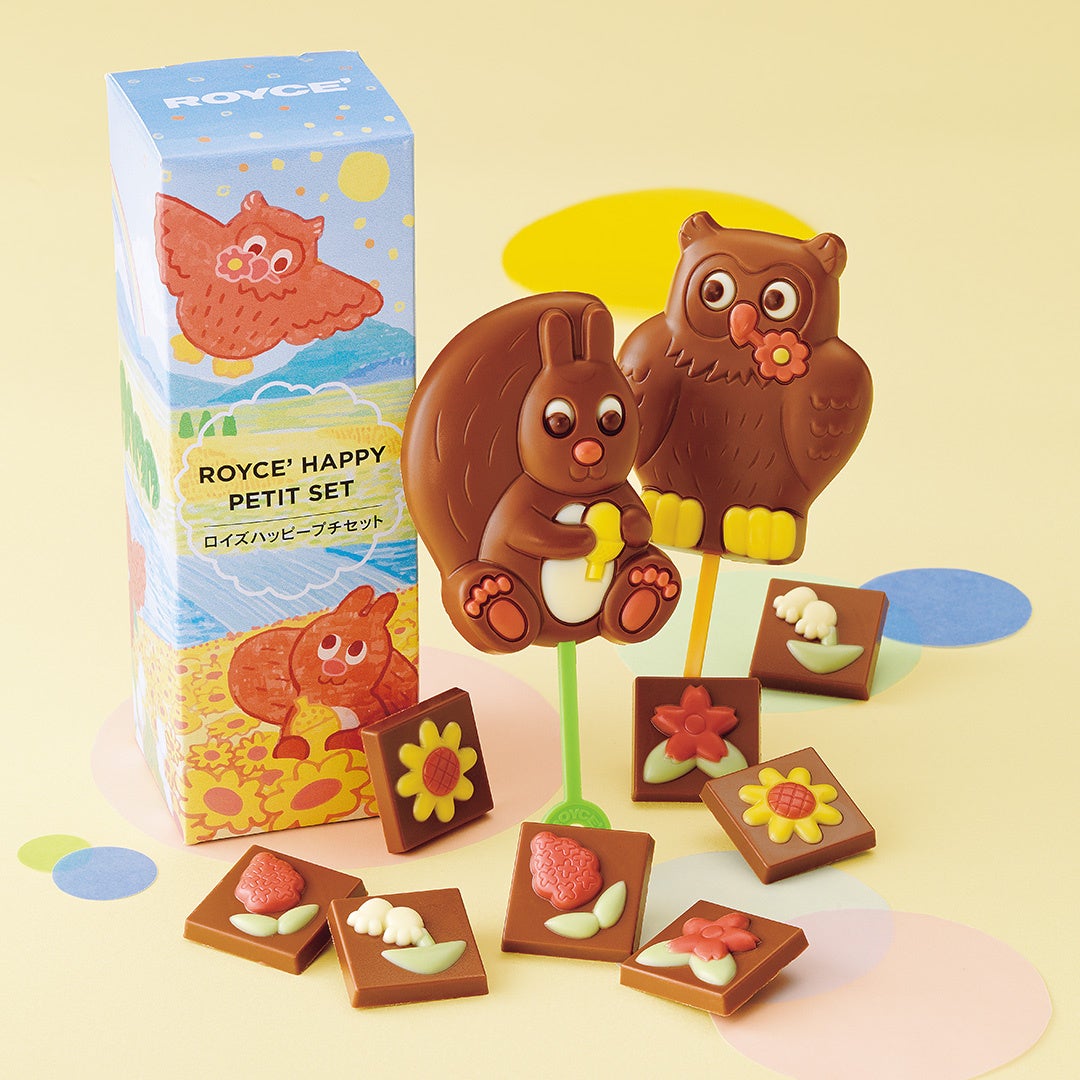 北海道・新千歳空港にあるチョコレートのワンダーランド「ロイズ チョコレートワールド」で人気のリスとフクロウのロイズポップチョコと、花々がモチーフのロイズフラワーチョコの詰め合わせ。お手頃価格なので気軽なプチギフトにお使いいただけます。