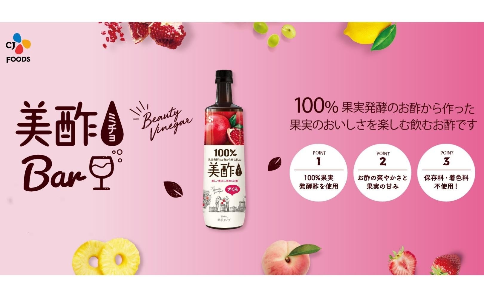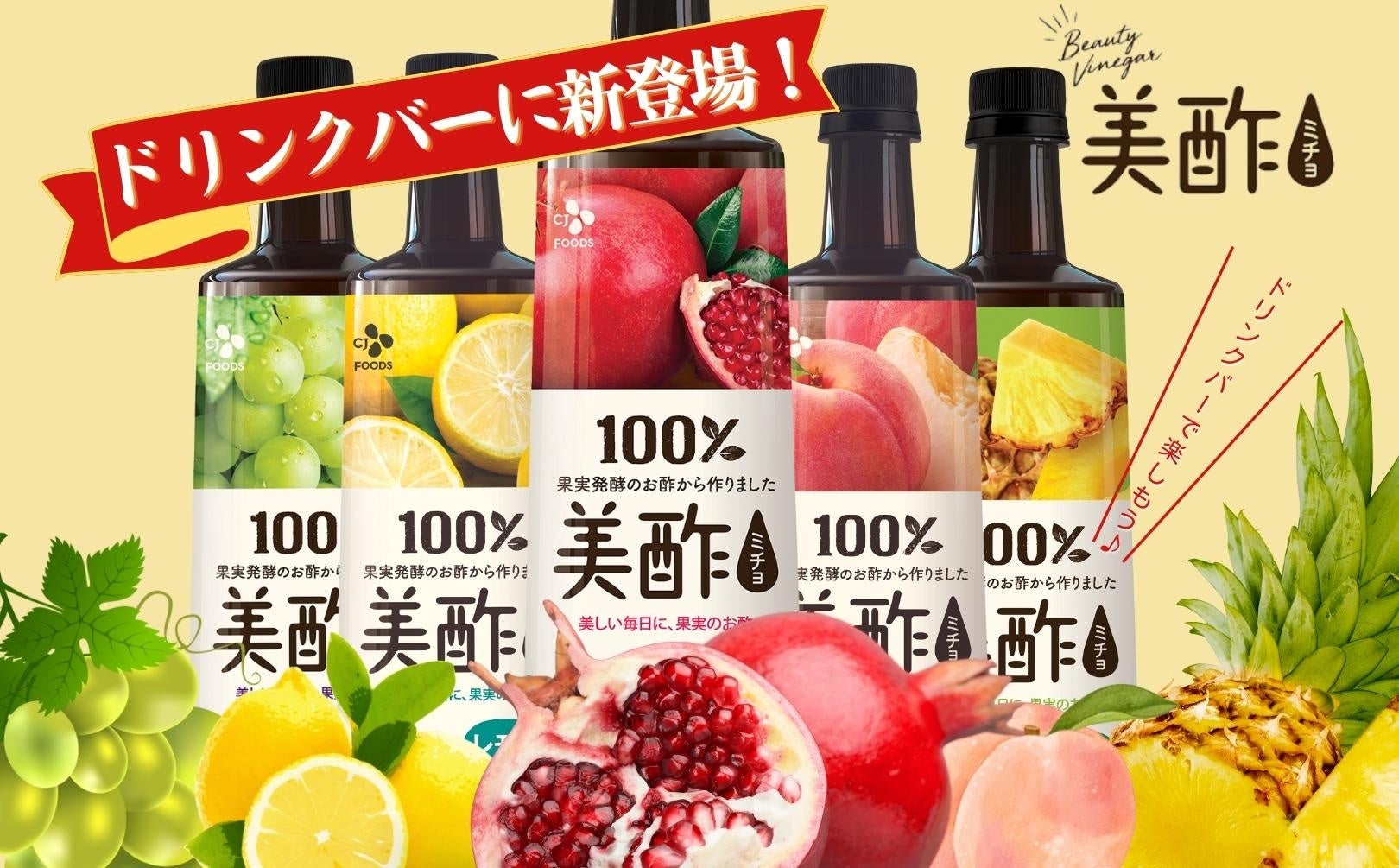 この度、54店舗のブッフェレストランのドリンクバーに、100%果実発酵のお酢から作った果実のおいしさを楽しむ飲むお酢『美酢(ミチョ)』 が登場!