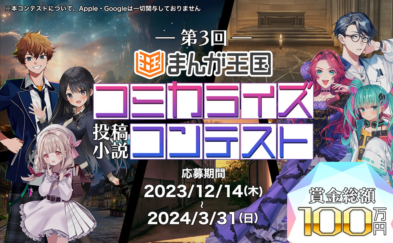 お得感 No.1のコミック配信サービス『まんが王国』(https://comic.k-manga.jp/)を中核に、コンテンツプロデュースを行う株式会社ビーグリー(本社:東京都港区、代表取締役:吉田仁平、東証スタンダード:3981)は、小説投稿サービス『ノベルバ』(https://novelba.com/)において、「第3回まんが王国コミカライズコンテスト」の結果発表を 2024 年6月 26 日(水)に行いましたので、お知らせいたします。