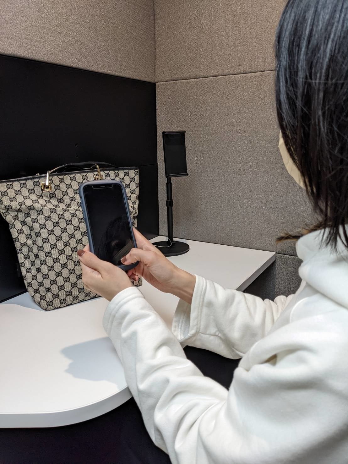 ①ブランディアBellの公式LINEでテレキューブを利用したい希望日時・場所をご連絡いただく。