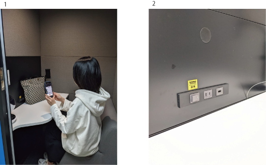 2個室内は電源も完備されているので、PC、スマホどちらからも安心してご利用いただけます。