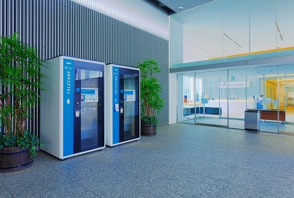 「テレキューブ」は、セキュリティが保たれた静かな環境で、資料作成やメールなどの業務、電話、Web会議などでのコミュニケーションが可能な防音性・遮音性に優れたワークブースです。