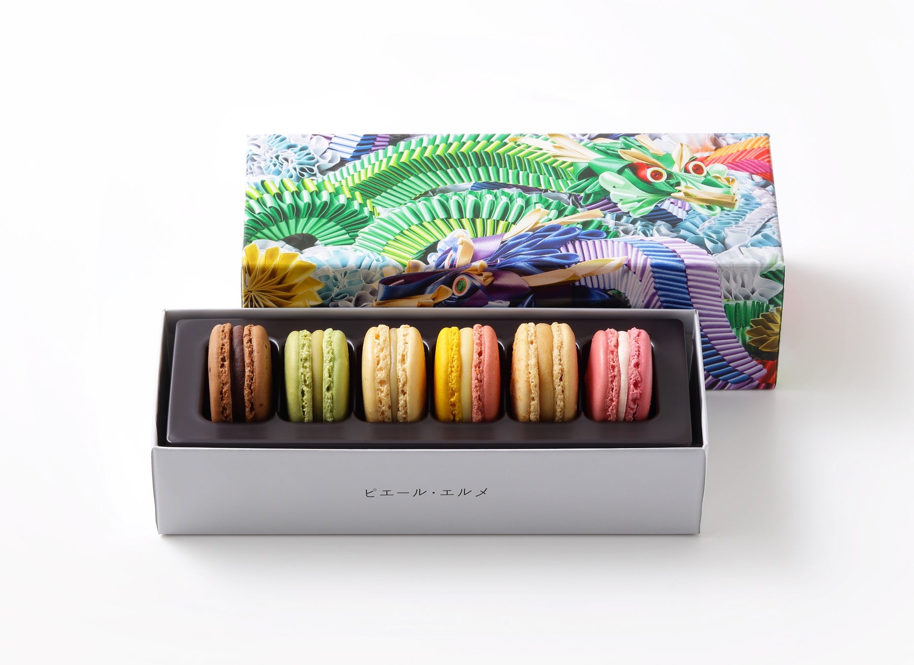 ●『Made in ピエール・エルメ』マカロン6個詰合わせ(2023Holiday/チョコレート、ジャスミン、ピスタチオ、ローズ、きな粉、レモン&ラズベリー各1個入) 3,240円【地下1階和洋菓子売場/販売:2024年1月14日まで】