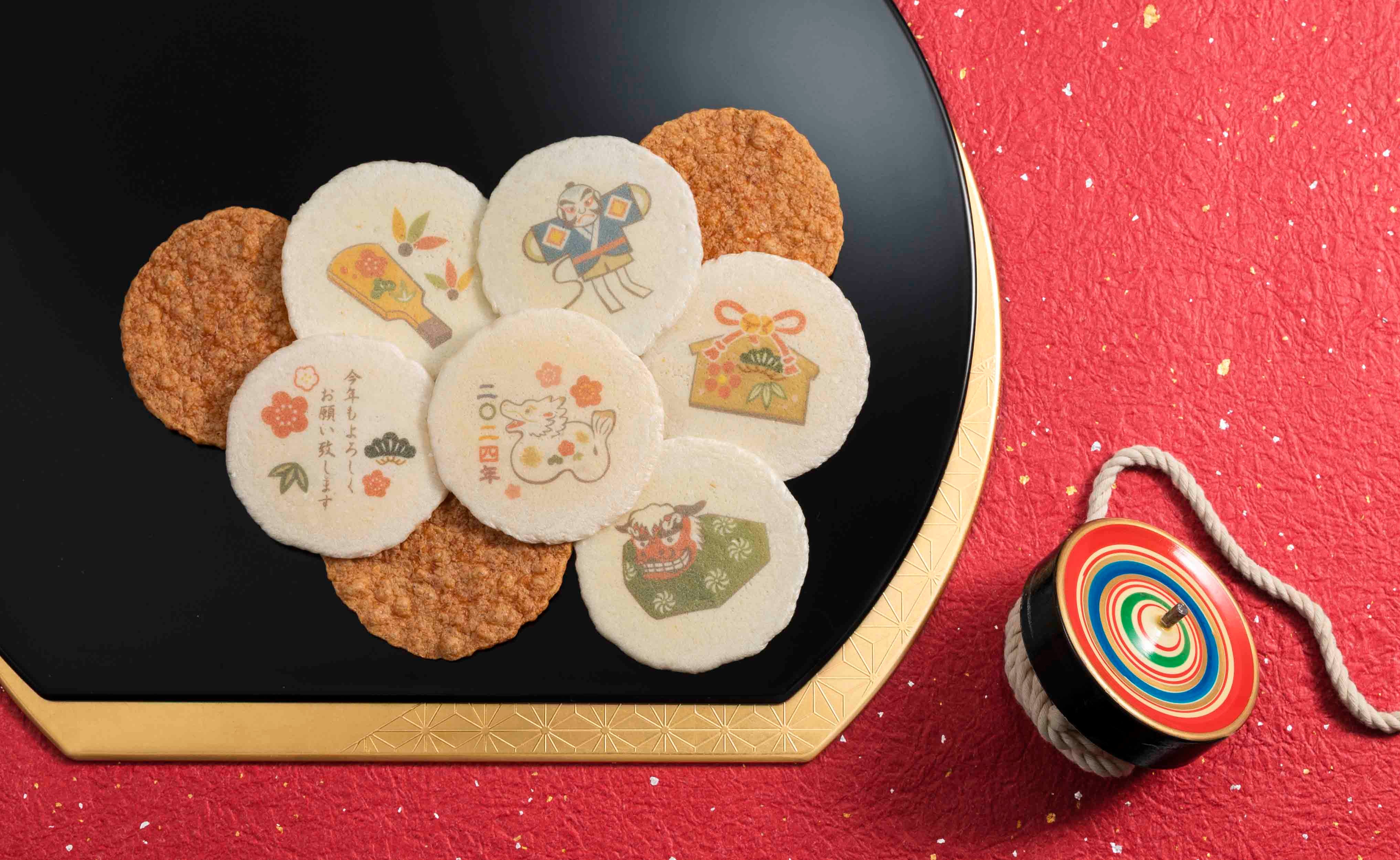 「良き年になりますように」の思いを込めてめでたづくしのえびせんべいです。