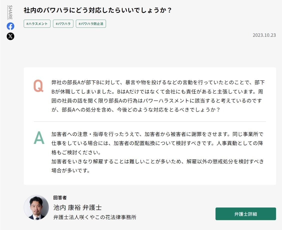様々な弁護士がそれぞれの専門性を活かした解説記事を掲載しています。本文1000文字程度で短く読みきりやすい記事構成となっているため、誰にでも理解しやすく読みやすい記事になっています。