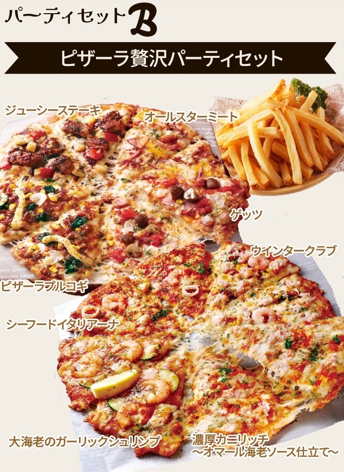 ピザーラでは、クリスマスや年末年始など、大人数でのお集りにピッタリの「パーティーセット」を販売いたします。