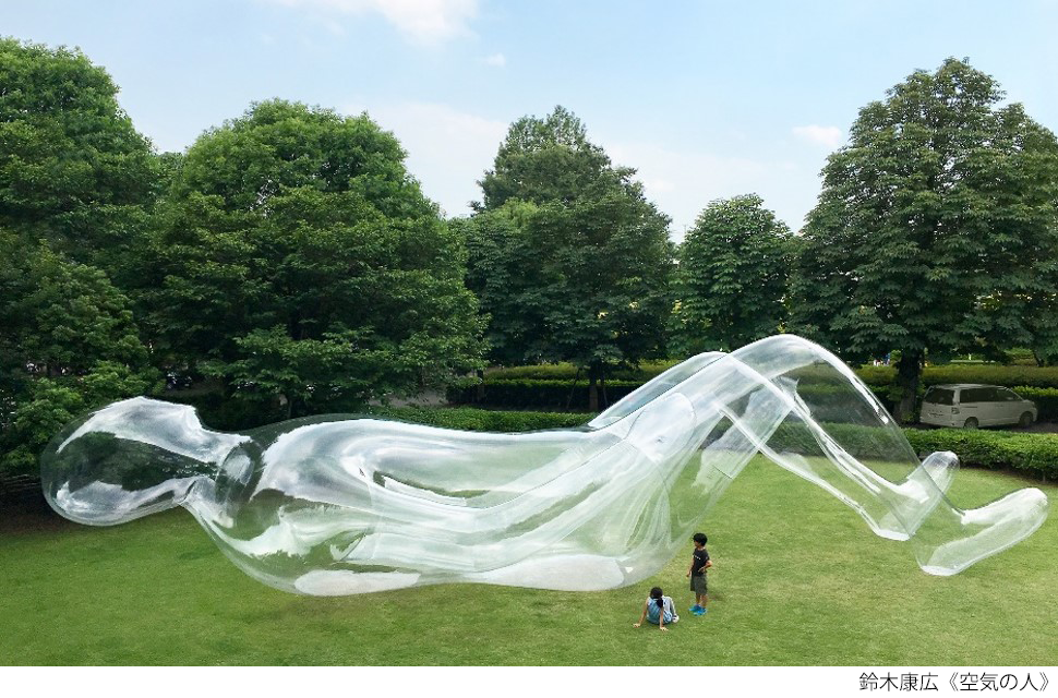 また、パフォーマンス当日、鈴木康広さん(アーティスト)の代表作である《空気の人》が駿府城公園紅葉山庭園前広場及び池袋・東京芸術劇場前に出現します。全長18m、幅約6m、高さ約5mにも及ぶ壮大な空気の彫刻をぜひ間近でお楽しみください!
