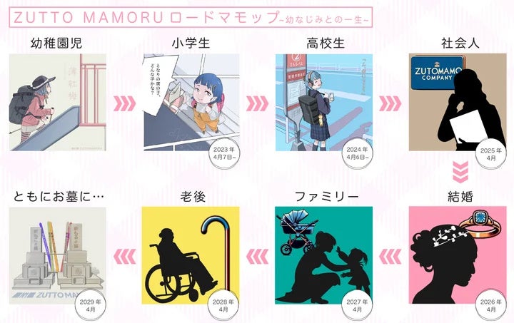 幼なじみとの生涯体験を創造する成長型NFTプロジェクト。小学生の女の子から始まる物語は、恋に落ち、結婚し、最後は一緒にお墓へー、というストーリーを描く。