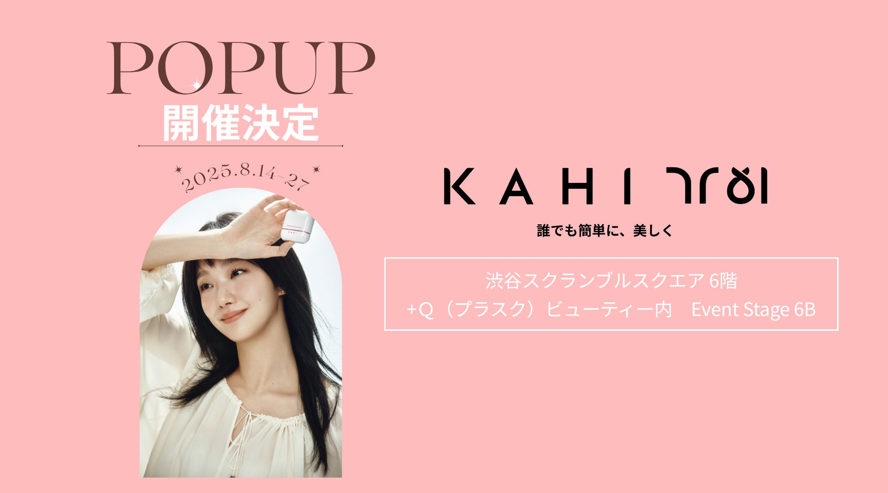 韓国ラグジュアリーブランド「KAHI(カヒ)」および、輸入総代理店の株式会社セキド(本社・東京都新宿区、代表取締役・関戸正実、証券コード:9878)は、2025年8月14日(木)〜8月27日(水)に渋谷スクランブルスクエア 6階 +Q(プラスク)ビューティー内 Event Stage 6Bにて期間限定POPUPイベントを開催いたします。