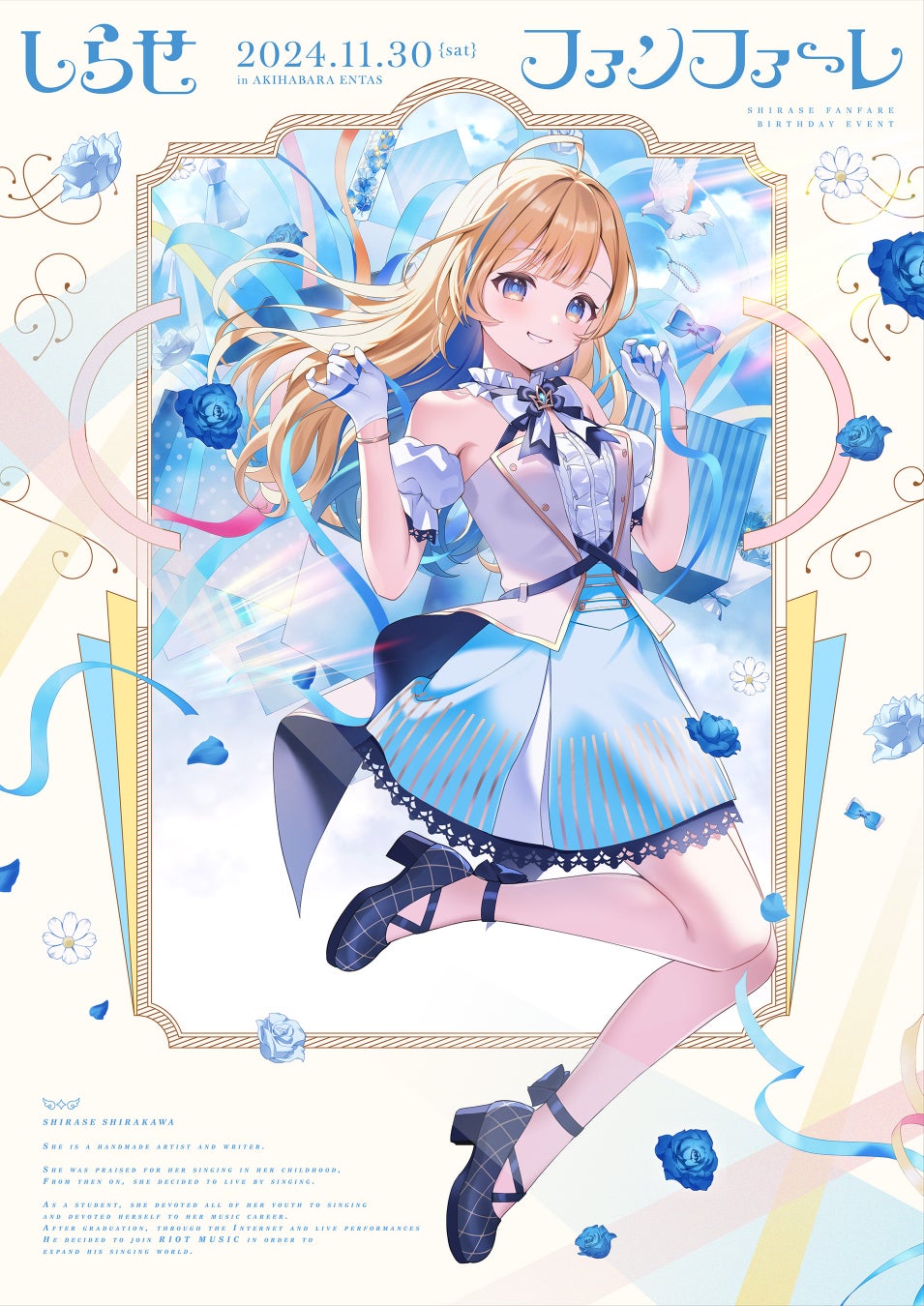 株式会社RIOT MUSIC(本社:東京都港区、代表取締役:舩橋 純、株式会社Brave group100%子会社)は、バーチャルミュージックレーベル「Blitz Wing」に所属する「白河しらせ」の誕生日を記念した初のワンマンライブ『しらせファンファーレ』を2024年11月30日(土)秋葉原エンタスにて開催することをお知らせいたします。また、10月19日よりチケットとグッズの販売を開始いたしました。