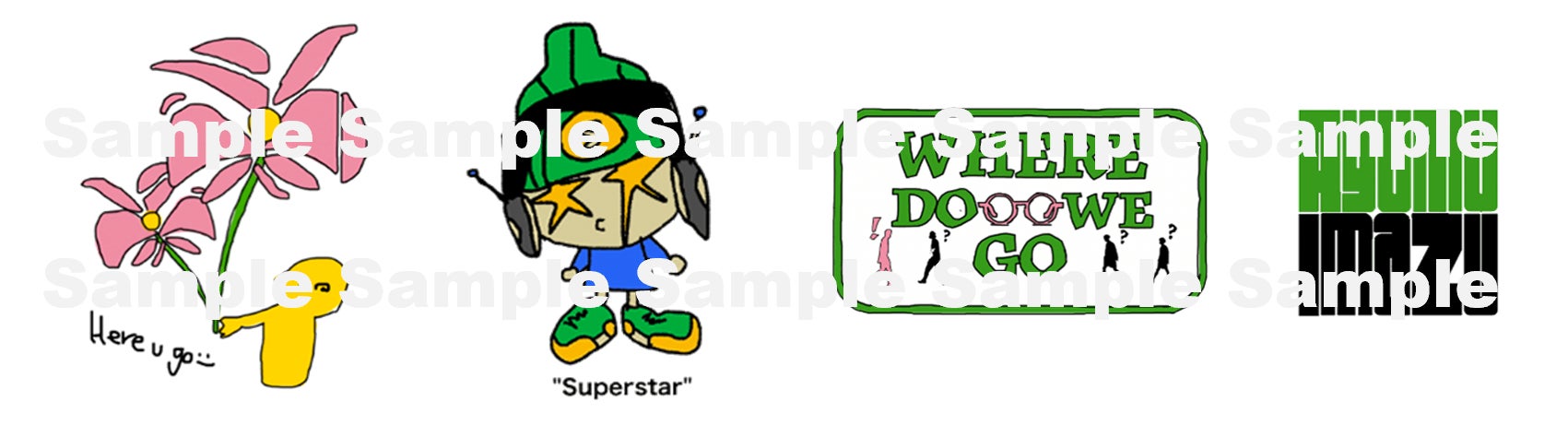TOMORROW X TOGETHERやLE SSERAFIM、&TEAM、ILLITのアーティストロゴや、めざましライブにも出演するAyumu Imazuさんの手書きデザインのクリップアート、ONE N' ONLYのロゴなど、weverseに参加している一部アーティストのモチーフを使ってデザインすることも可能です。