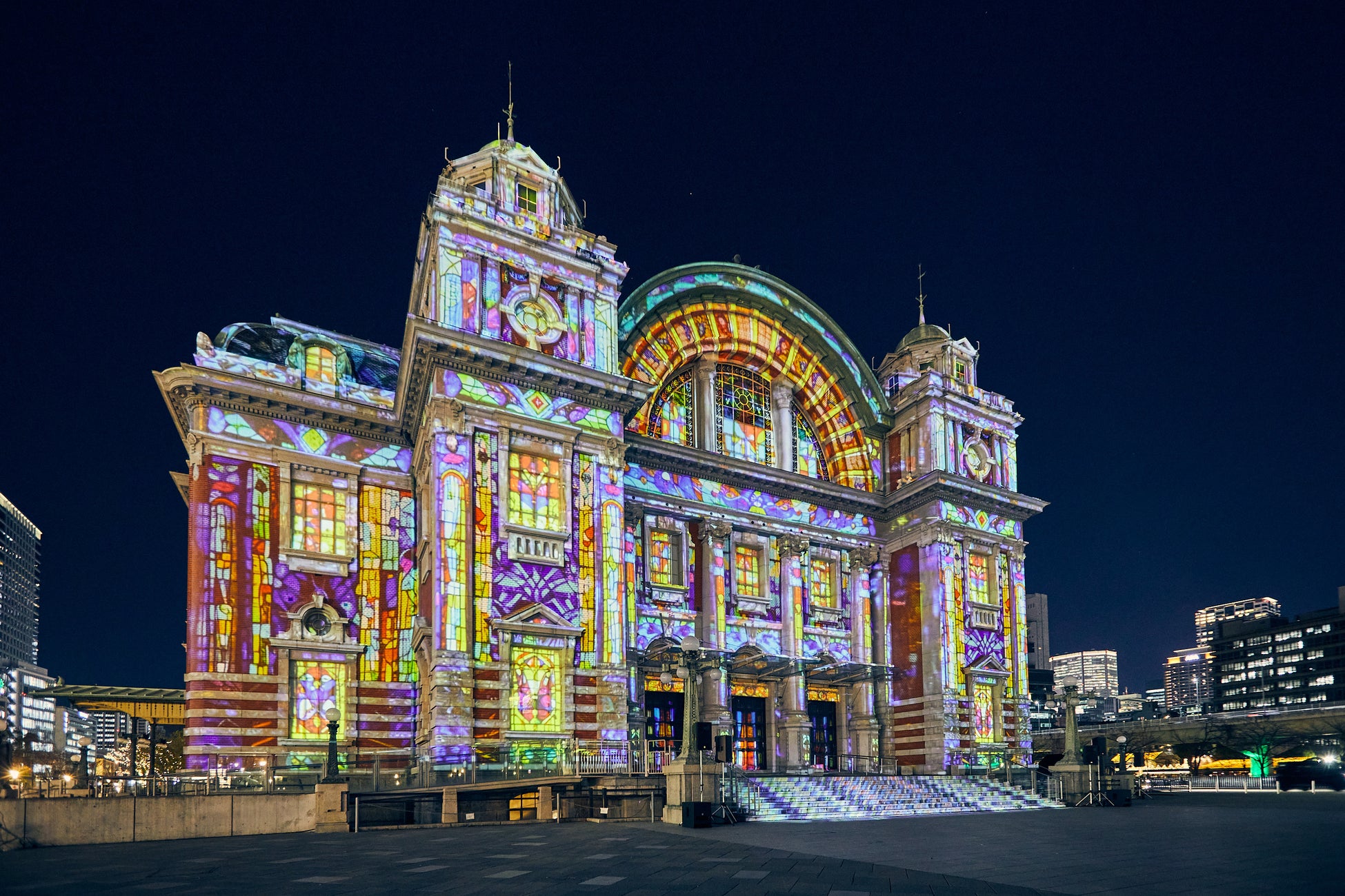 大阪最大級の光のイベント「OSAKA光のルネサンス」の中核コンテンツ。ステンドグラスの色彩と煌めき、水面のように揺れる幻想的なクリスタルの光などを投影し世代を超えた驚きと感動の夜を創出。