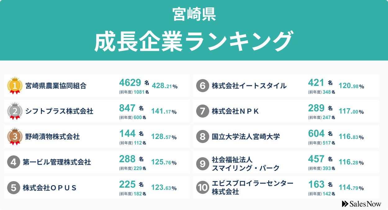 【宮崎県】成長企業ランキングTOP50!/SalesNow DBレポート