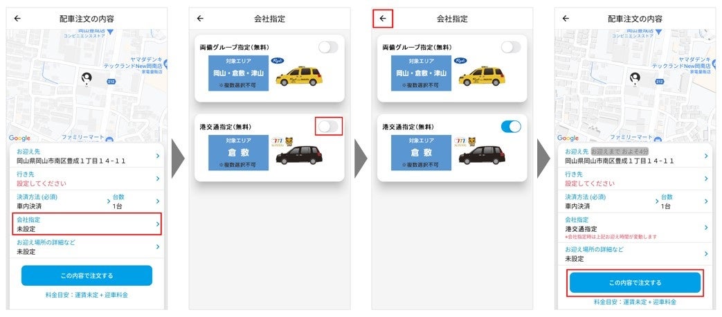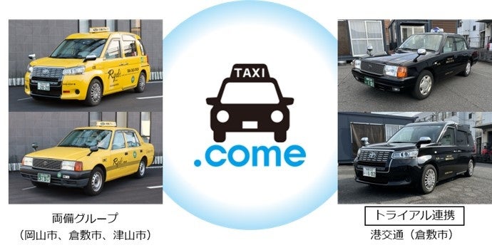 2月3日より岡山エリアでのトライアル連携を開始し、今回第2弾として倉敷エリアでのトライアル連携を、港交通株式会社(事務局:水島タクシー事業部、所在地:岡山県倉敷市神田1丁目2-5、代表者:渡辺清二 ※以下、港交通)と、2025年2月17日より開始します。これにより、トライアル連携期間中に「TAXI.come」でタクシーを注文すると、従来の両備タクシーユニットの車両に加え、連携会社のタクシー車両も配車対象となり、スピーディな配車を実現します。