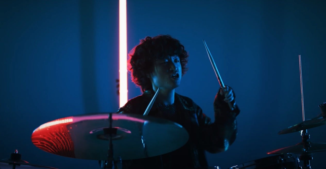 この「狂乱 Hey Kids!!」は途中にJazzアプローチがあったりと緩急のあるアレンジで、ダイナミックなライブ感を重視してレコーディングしました!今回の光をテーマにしたMVでは、激しさと妖しさの二面性が表現されています!