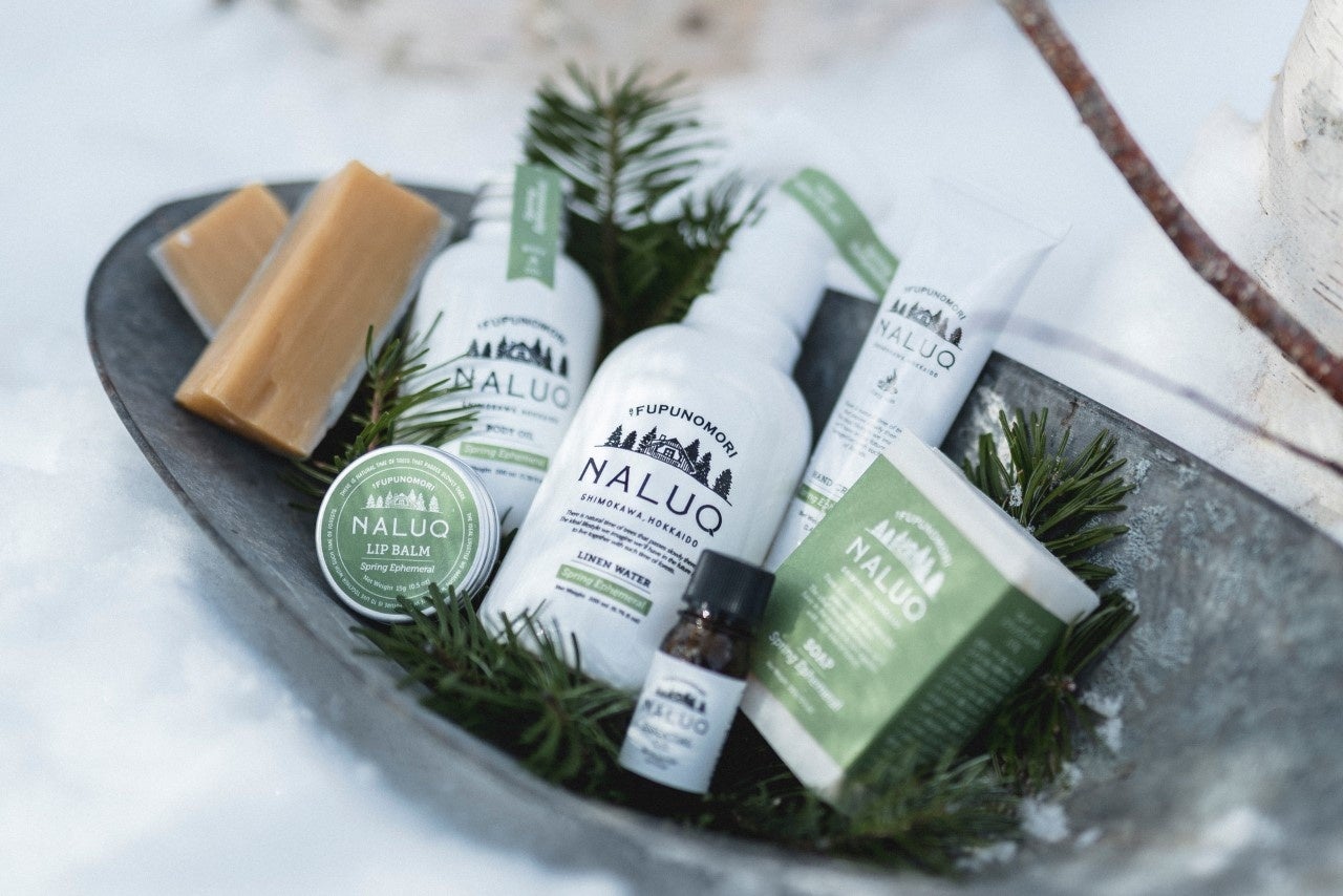 ハンドクリームやボディオイル、天然マツ樹脂を使用したヘアワックスやヘアクリーム、手軽に使えるルームスプレー。お出かけ前や仕事の合間の気分転換はもちろん、一日の疲れを癒すリラックスタイムにおすすめなのは、北海道の森から生まれたブランド「NALUQ(ナルーク)」。北海道のモミの木トドマツを使ったオリジナルブレンドの香りのコスメやアロマ雑貨が揃います。香りのベースは、北海道モミエッセンシャルオイル。林業の町で伐られたトドマツの枝葉を自社で蒸留して、抽出。可能な限り、作り手の見える原料を厳選しています。