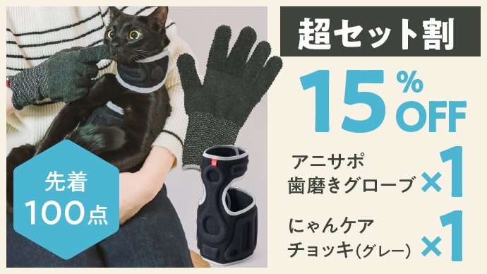 ③「アニサポ 歯磨きグローブ」×1個 +「にゃんケアチョッキ(グレー)」×1個