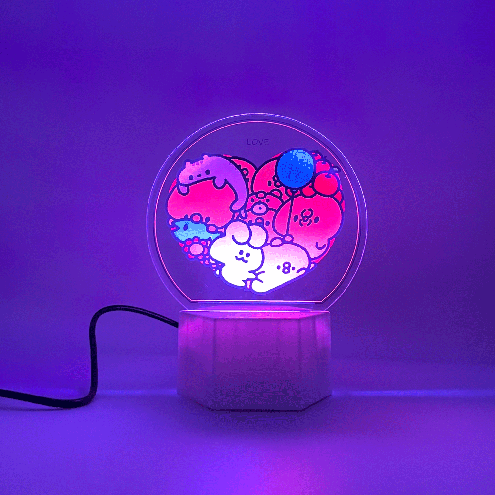 UP-Tから、ライティングスタンドが新登場しました。クリア素材のパネルに好きなデザインをプリントして光らせることができます。本体スイッチを押すことで7色のライトを切り替えが可能です。お家のインテリアはもちろん、カフェなどの店内装飾としてもおすすめの商品です。