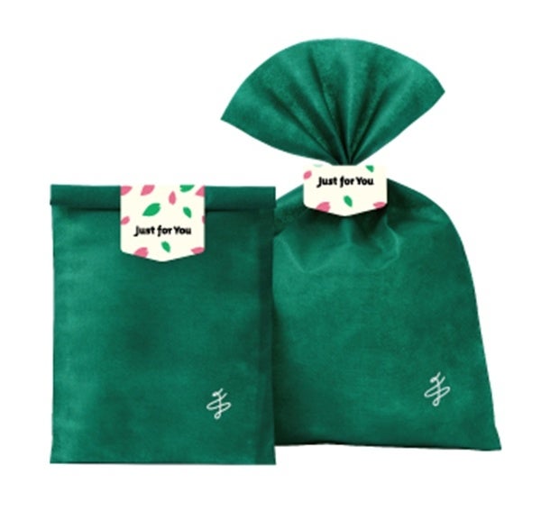 さまざまな形の品物もきれいに包める不織布の袋に、環境に配慮した紙製の口止め・シールを合わせた新デザインにリニューアルしました。大切な方への贈り物に、ぜひご利用ください。