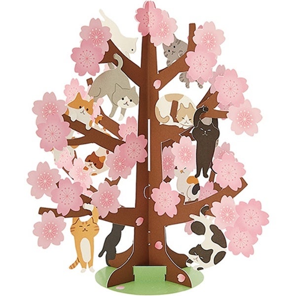立体にして飾ることができます。ネコと桜のデザインのミニカードが付属していますので、寄せ書きとしてもお使いいただけます。
