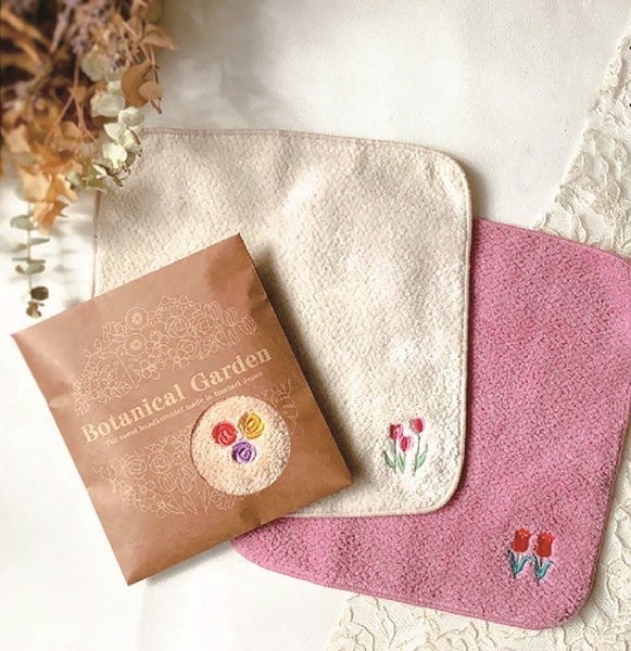 繊細な草花の刺繍がポイントの今治産タオルハンカチです。プチギフトだけでなく、“お返し用”としてもおすすめです。