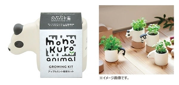 手のひらサイズの陶器製アニマルポットでハーブを育てます。パンダ(アップルミント)のほか、シマウマ(バジル)・シロクマ(ワイルドストロベリー)・ペンギン(カモミール)をご用意しています。
