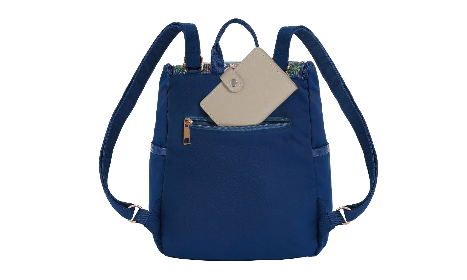 財布やパスケースなどの貴重品を入れられるファスナーポケット。バッグ背面に配置されているので、防犯対策にもバッチリ!