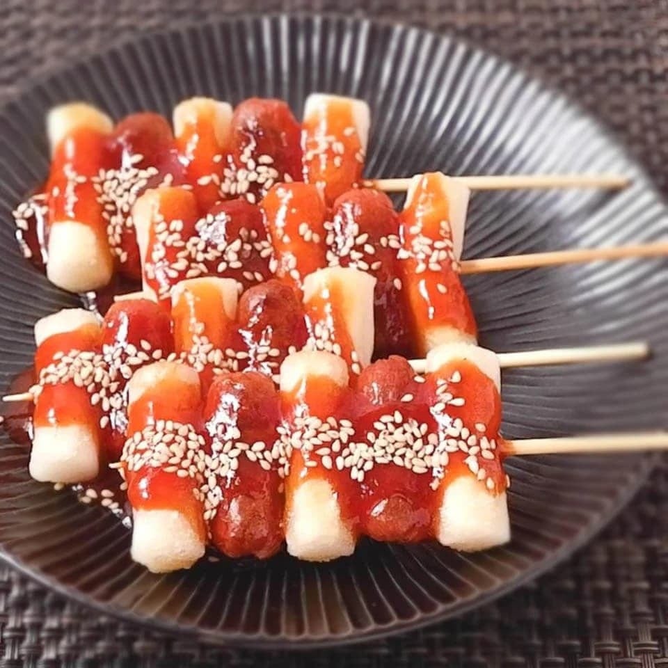 甘辛いタレが食欲をそそるヤンニョムチキンと韓国屋台で大人気のソトクソトク。もちもちのトッポギもおすすめです。