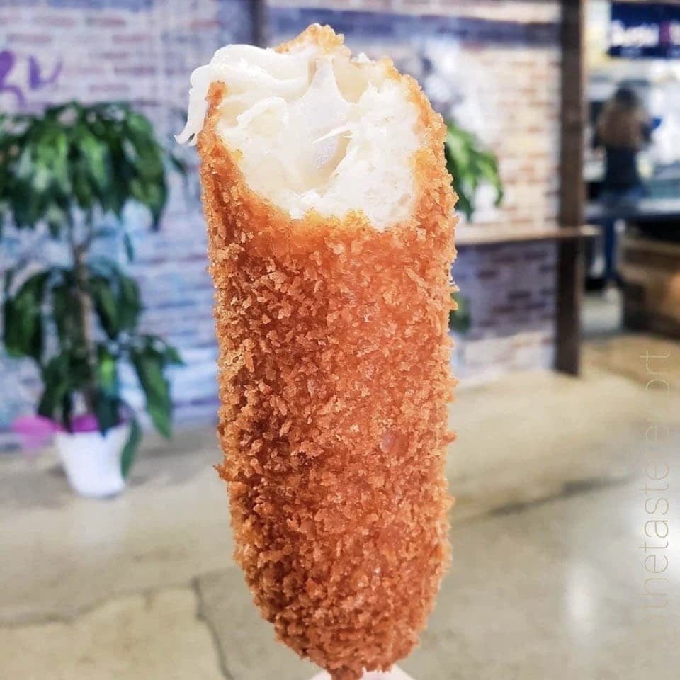 のびーるチーズのチーズハットグは韓国発祥のおやつです。ケバブといっしょにどうぞ。