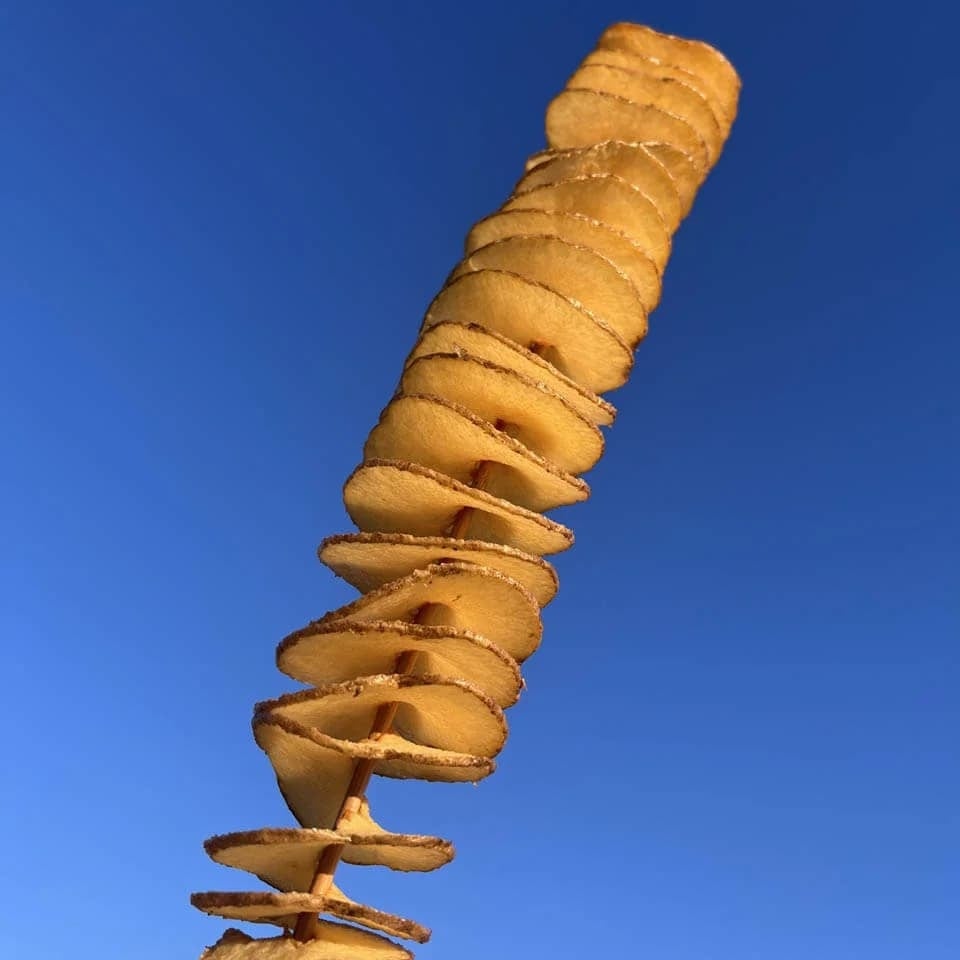韓国で人気の屋台フード、トルネードポテトです。独特な見た目でインパクト大!子どもたちに大人気のおやつです。