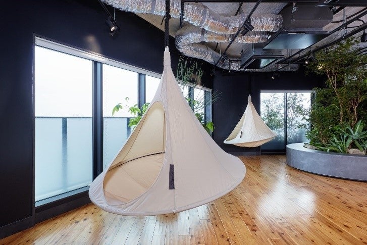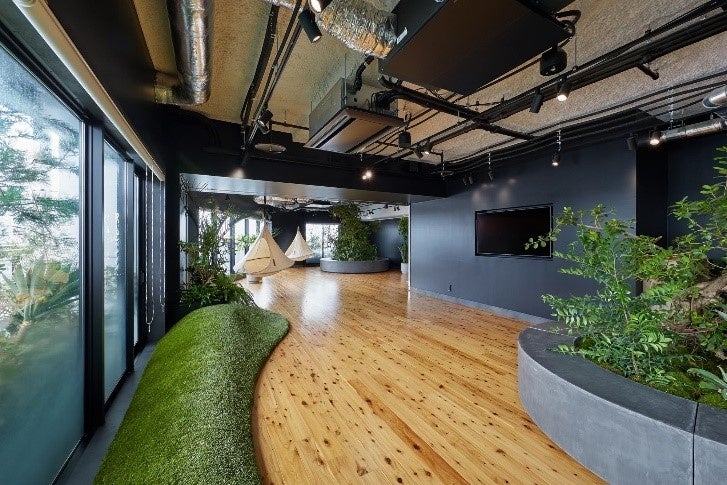 フォレストパークは、くつろげるような大きな公園が少ない「十条」駅前において、マンション内部に公園を作ろうという発想から生まれました。実際のアウトドアで使用するデッキ材や天然のフローリングを使用するだけでなく、空間を植栽で囲み、人工芝には、感触の良い素材を選定することで、屋内でありながら自然の中にいるような居心地を重視しています。また、人工芝、ハンモック、可動式プランターがあることで、空間をフレシキブルに活用できます。