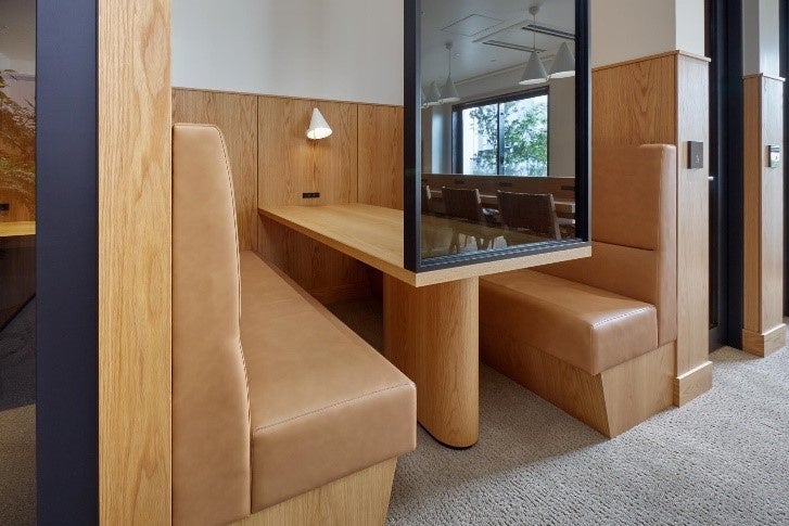フォレストパークに隣接するワークラウンジでは、リモートワークや勉強などに必要な電源・Wi-Fiといった機能を備えつつ、過ごし方に合わせて「オープンテーブル」「プライベートデスク」「ミーティングブース」「プライベートブース」の4つからお選びいただけます。ウェルカムラウンジからコーヒーの持ち込みが可能となっており、快適なワーク環境をご提供いたします。