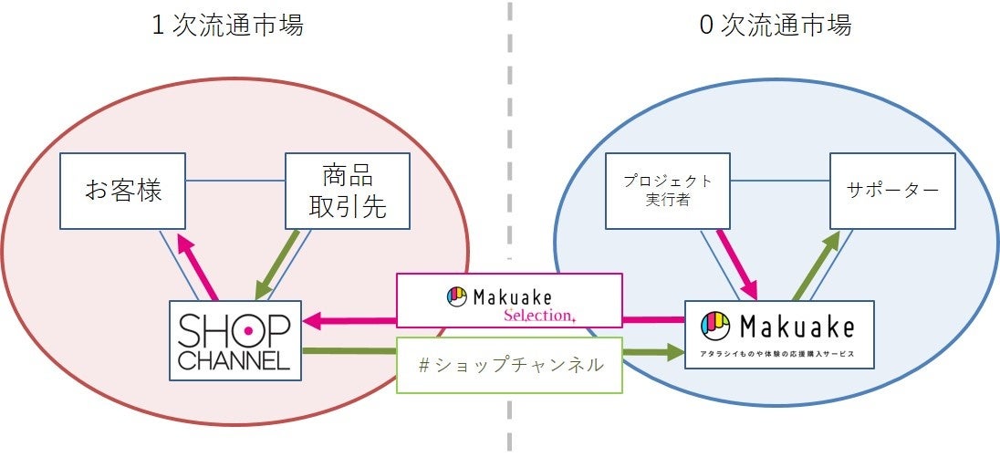 ジュピターショップチャンネル株式会社(代表取締役社長:小川吉宏、所在地:東京都江東区、 以下ショップチャンネル)は、アタラシイものや体験の応援購入サービス「Makuake」を運営する株式会社マクアケ(代表取締役社長:中山亮太郎、所在地:東京都渋谷区、以下マクアケ)と協業し、マクアケ発の商品をショップチャンネルで販売する「Makuake Selection」、ショップチャンネル商品取引先がMakuakeプロジェクトへ参加することを支援する「#ショップチャンネル」を開始します。