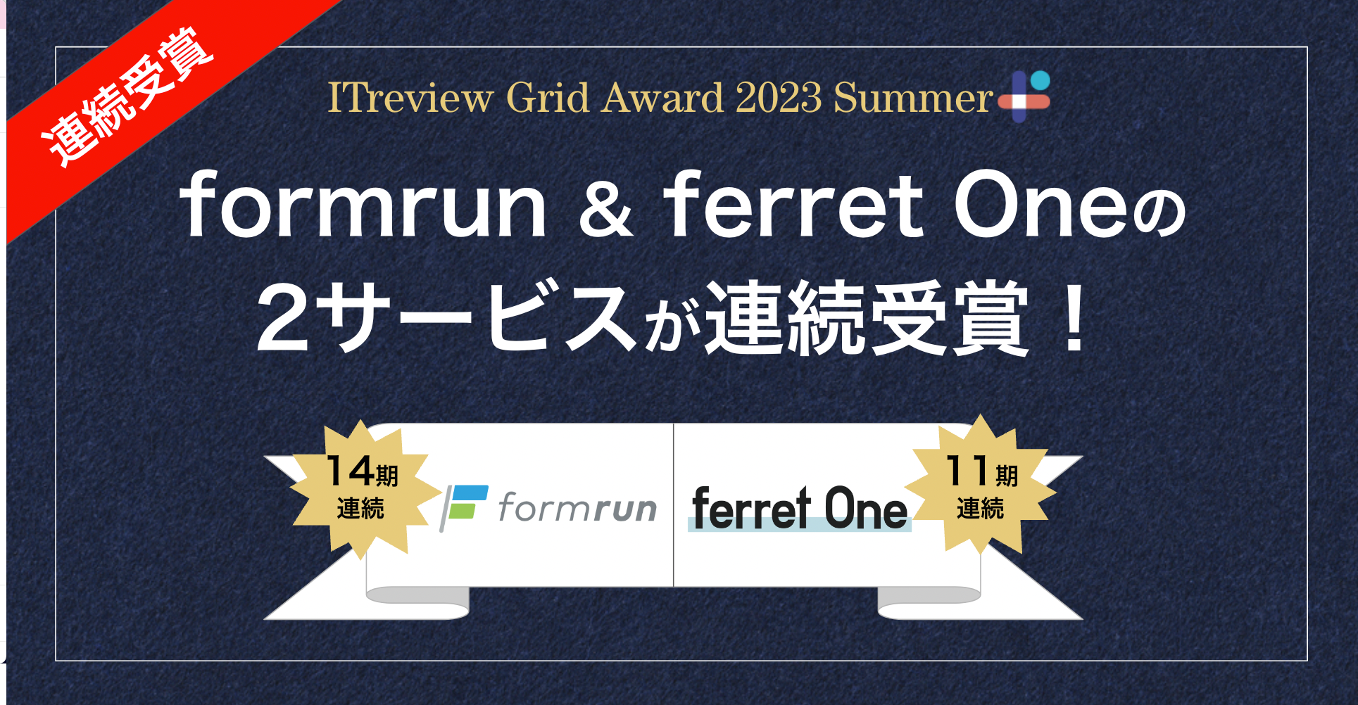 「ITreview Grid Award 2023 Summer」にてformrun&ferret Oneの2サービスが同時受賞!