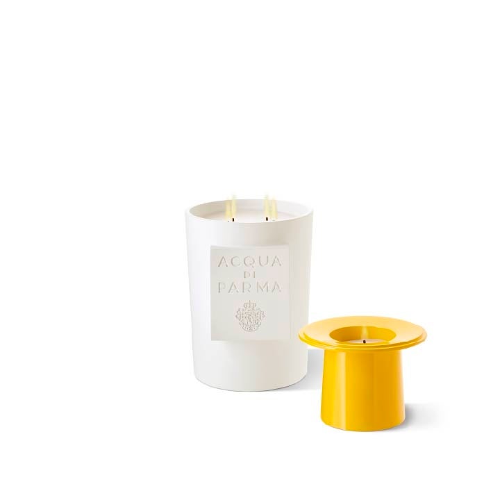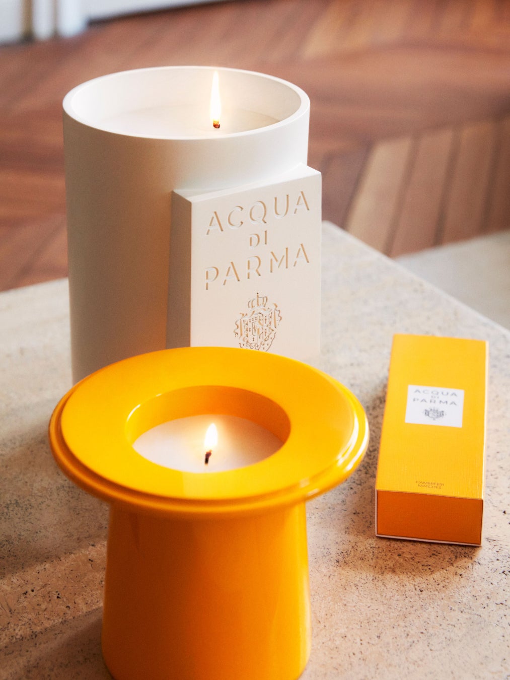 「このプロジェクトでは、アクア ディ パルマの伝統を守りながら、現代性を融合させて表現しました。ブランドの真髄をなす要素に着目したことで、制約にとらわれずに斬新なデザインを追求することができました。自由なアプローチに挑むことができたおかげです。私の作品はコントラストのバランスを強調することが多いのですが、その好例が“ルーチェ ディ コロニア シャポーキャンドル”。ナチュラルでニュートラルなマットホワイトに仕上げたキャンドル本体に、鮮やかなイエローのキャップが映えます。」