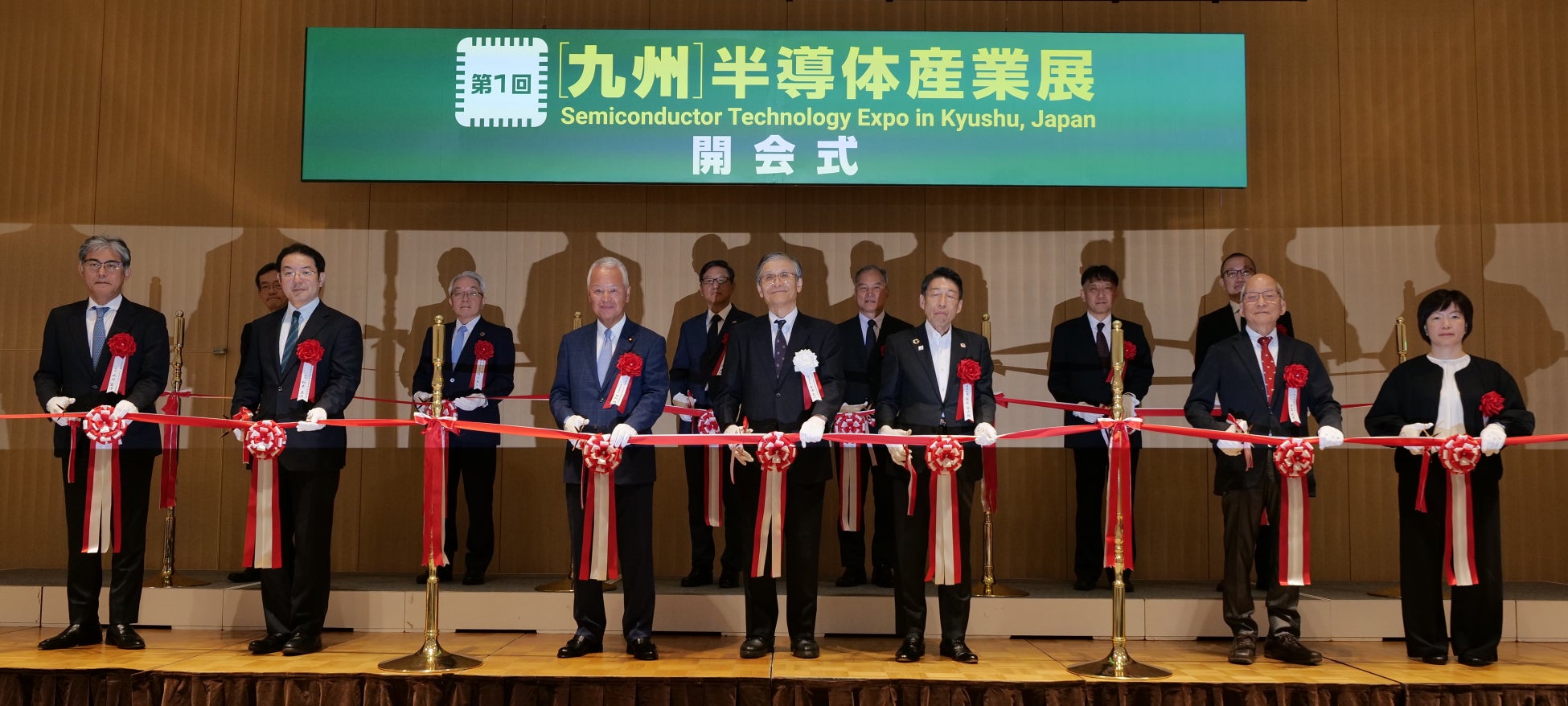 開催初日の9月25日(水)には、自由民主党 半導体戦略推進議員連盟 会長 甘利 明 衆議院議員、服部福岡県知事など、多くのご来賓をお迎えし、開会テープカット式を行いました。式典では、九州における半導体産業のさらなる発展への期待が表明され、本展への熱い注目が集まりました。