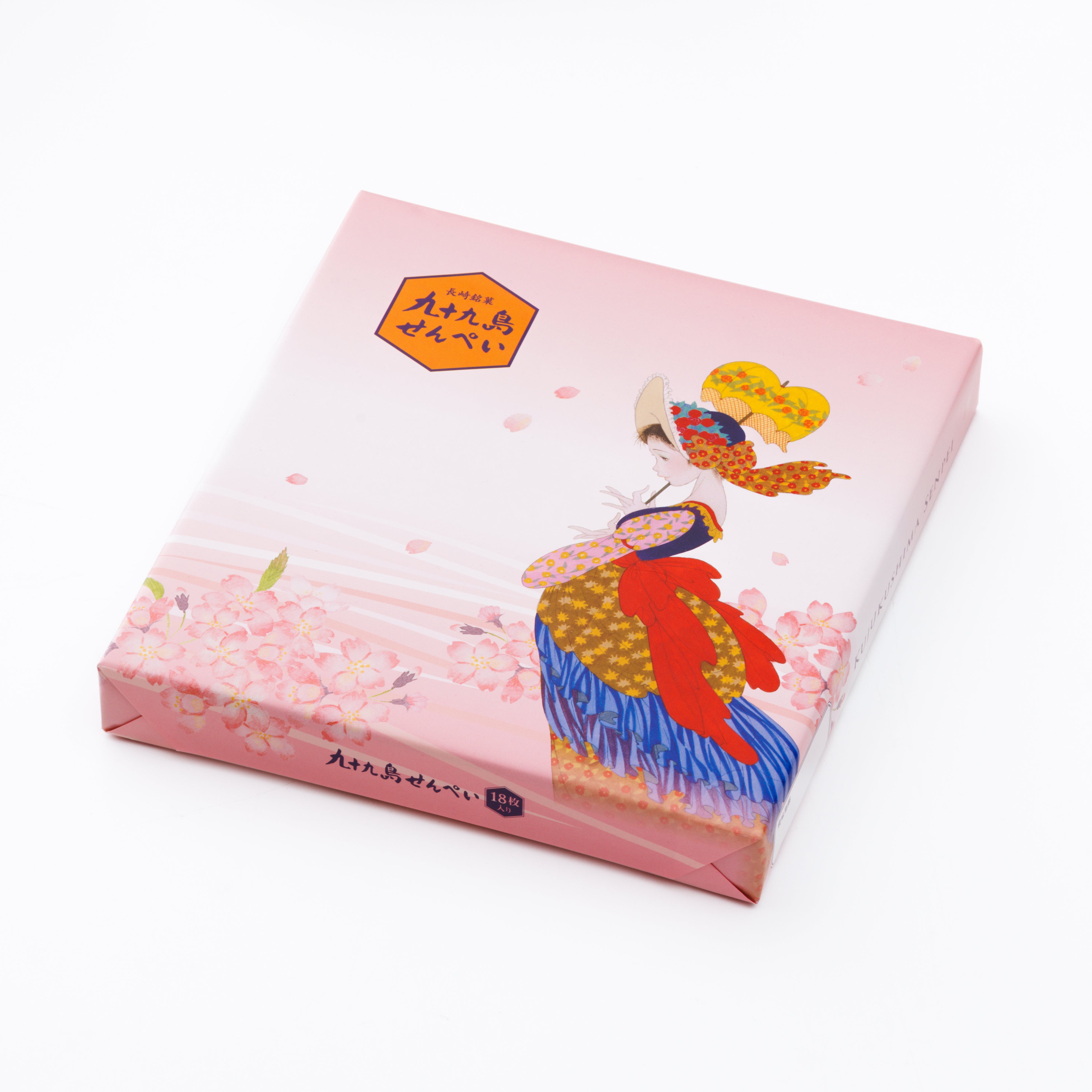 そんな長崎銘菓より、今春、今だけの“桜のりんがけ”でご用意した「春の九十九島せんぺい」を発売いたします。九十九島せんぺいの代名詞である、職人の手作業によって刷り上げる“りんがけ”に春への想いを閉じ込めました。また、特別感の演出に、パッケージにも桜吹雪と共に春の暖かさを描き、限定デザインでご用意しました。