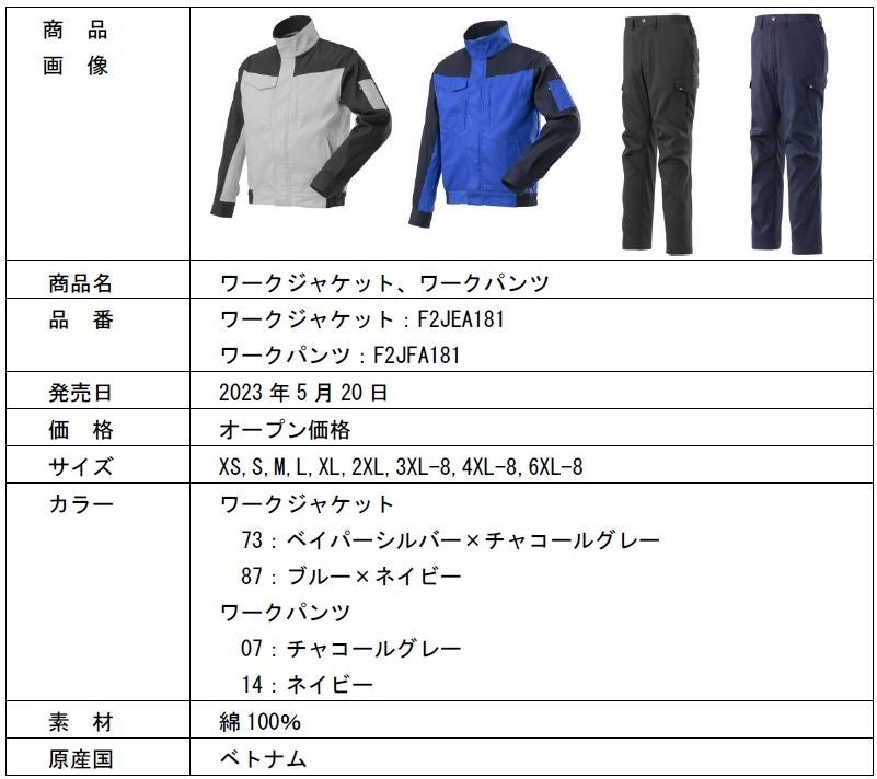20%以上のストレッチ性を持つ綿100%「ワークジャケット・パンツ」発売