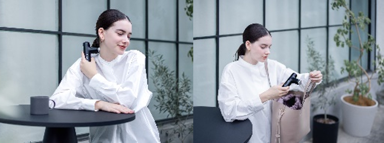 わずか“220g”のボディに、高性能ブラシレスモーターを搭載し、パワフルな振動で顔から足まで各部位のトータルボディケアができるガン型ボディケアツールです。コンパクトサイズで、携帯性にも優れているため、時間や場所を選ばずいつでもどこでもボディケアを行うことが可能。さらに、1分間で約2,000回~約3,000回のパワフルな振動によるボディケアを実現。また、約650回/分の低速振動モード(フェイスモード)を搭載。デコルテからフェイスラインに優しくアプローチできます。