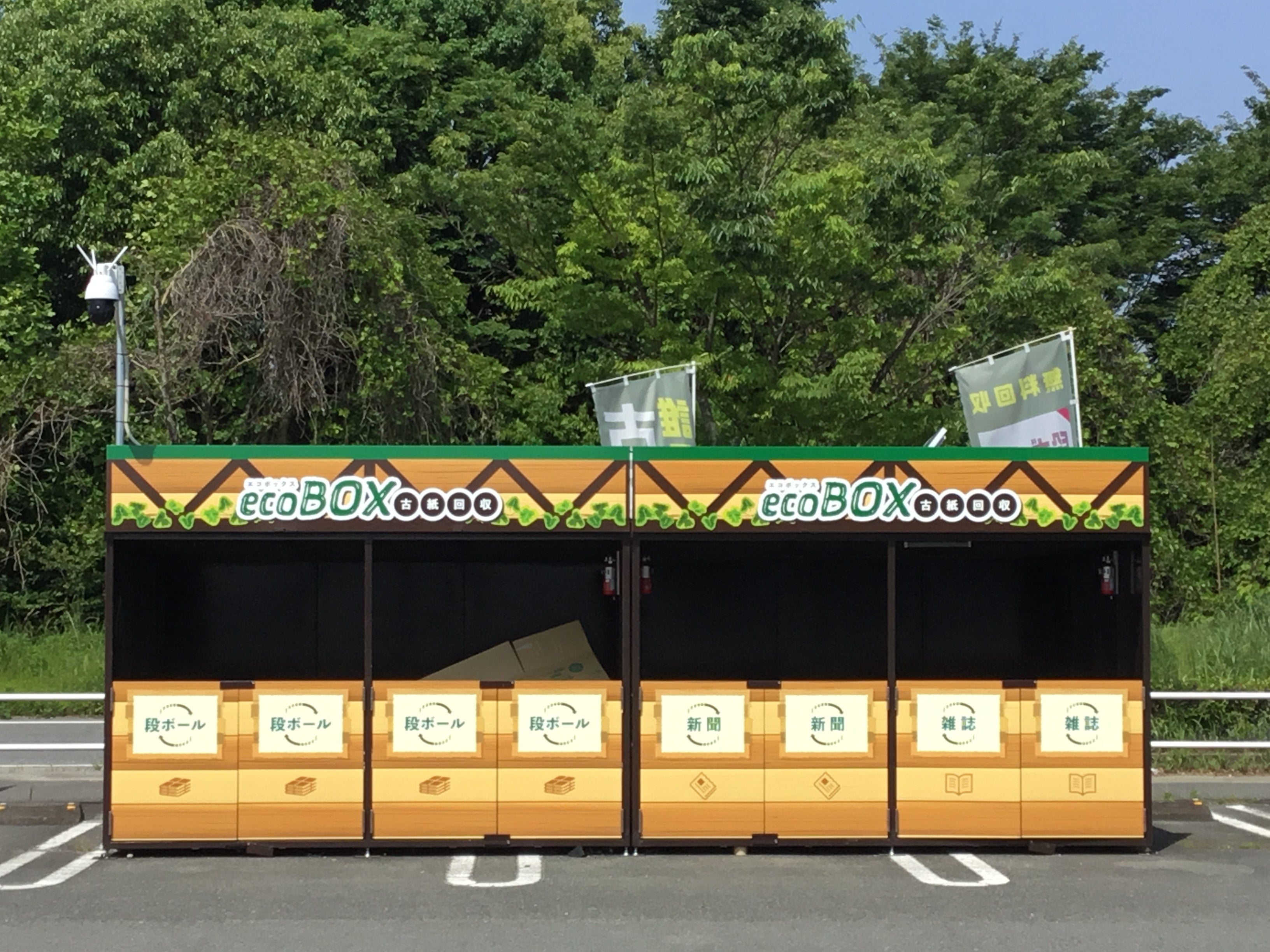 当社では、古紙回収用コンテナを「エコボックス」とネーミングし、オリジナルデザインにて展開しております。家庭で不要になった段ボール、新聞・チラシ、雑誌などの古紙を無料で回収し、リサイクルすることで環境負荷を抑制する取り組みになります。コロナ禍でネット通販などの拡大により、一般家庭で段ボールの廃棄量が増加している状況から、ダイナムの店舗駐車場への設置を決定いたしました。