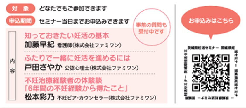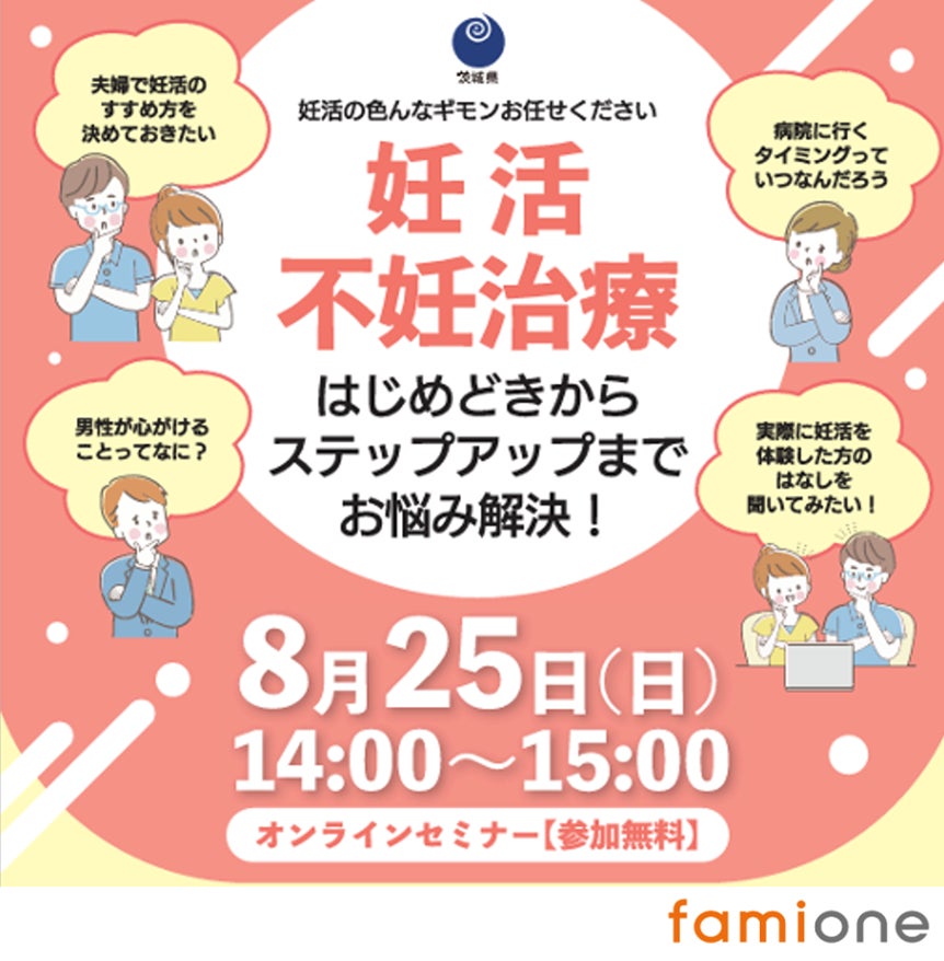 「茨城県妊活・不妊等サポート体制強化事業」の一環として、8月25日に専門家によるオンラインセミナーを開催します