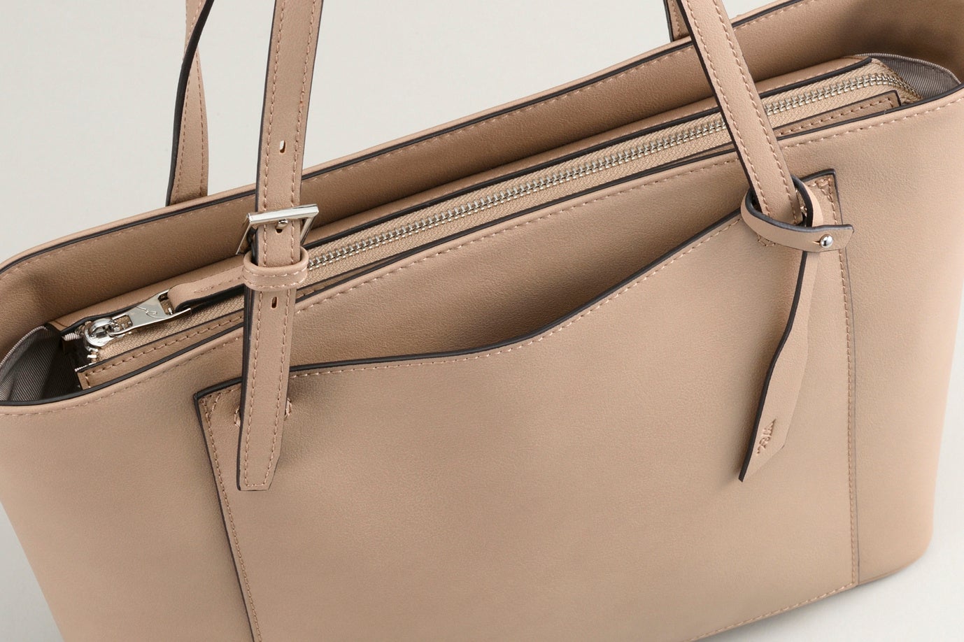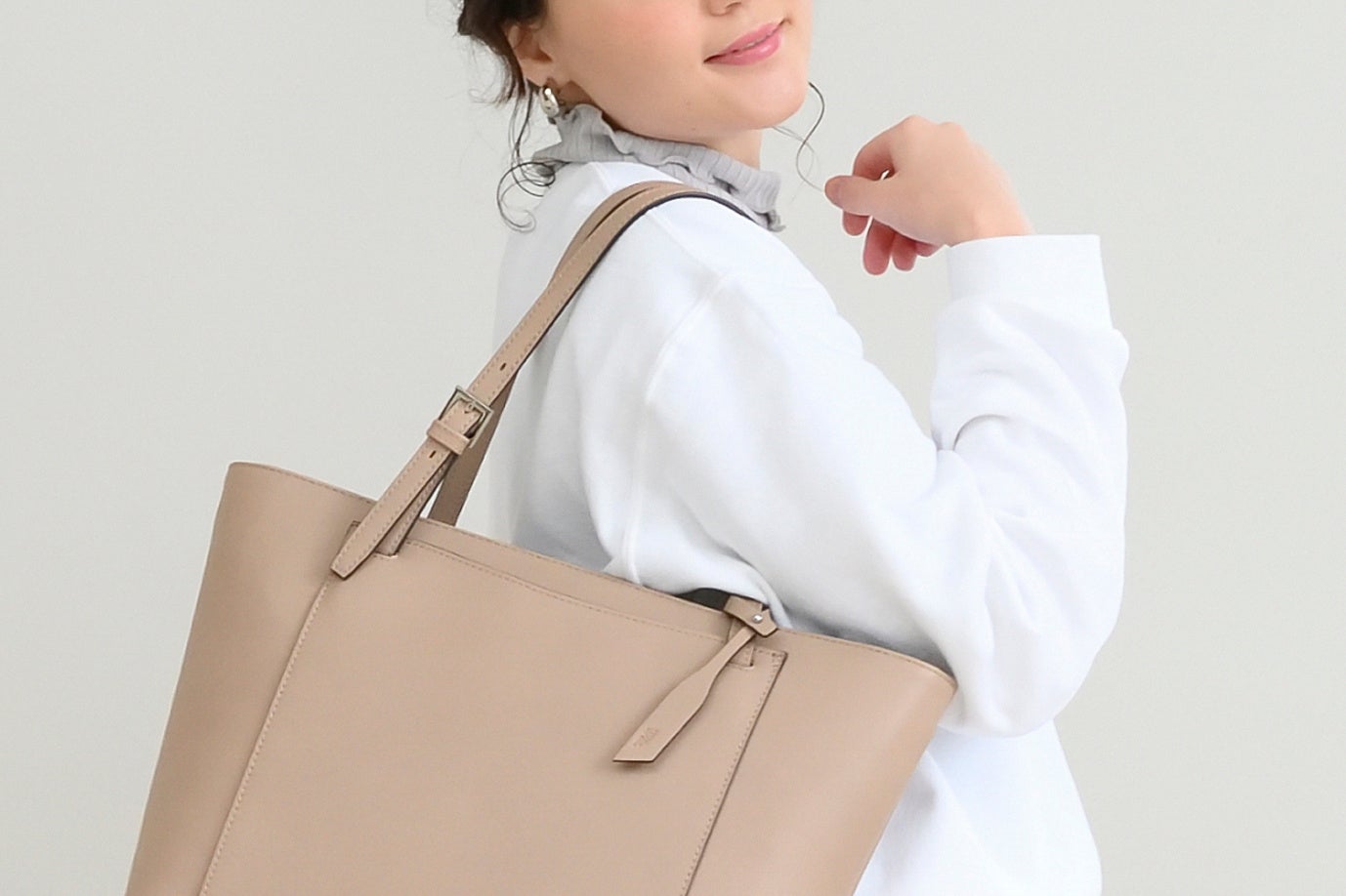ジャケットスタイルのようなきちんとコーデはもちろんのこと、オフィスカジュアルスタイルにもしっくりハマるシンプルなデザイン。長さを調節することで、手提げ/肩掛け2wayの持ち方を楽しめる「ショルダーベルト」が付いています。
