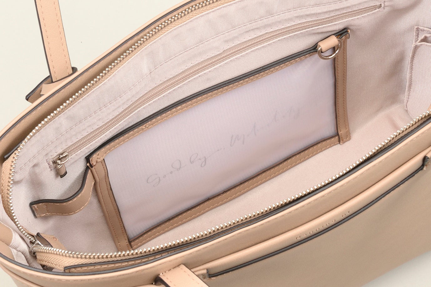 鍵やワイヤレスイヤホンなどの小物をフックで繋いでおける「ストラップ」や、ファスナーを開けなくても中身が見える「シースルーポケット」、「ペン差し」や「ボトルホルダー」などの、荷物を収納しやすく、見つけやすい工夫を施しています。