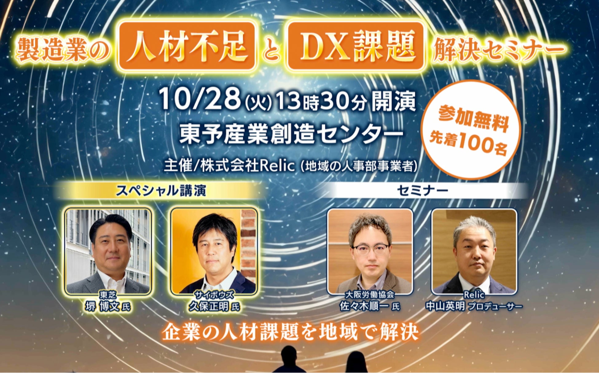 事業共創カンパニーである株式会社Relic(本社:東京都渋谷区、代表取締役CEO:北嶋貴朗、以下、Relic)は、経済産業省が推進する、令和7年度「中小企業支援事業補助金(地域の人事部支援事業)」の間接補助業者に採択されました。
