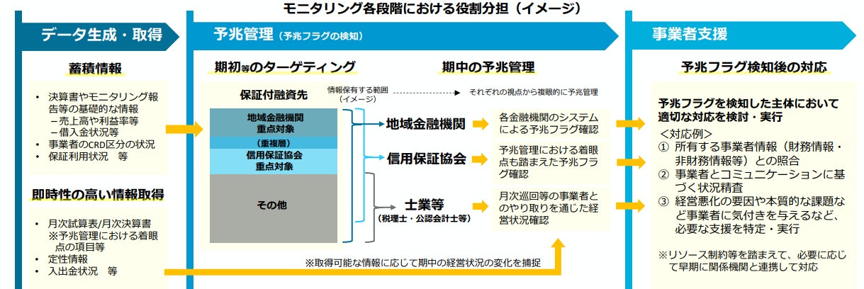また、モニタリングのために地域金融機関と信用保証協会が融資・保証先の財務データを取得する重要性に触れています。