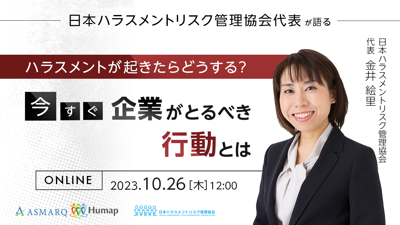 求められるハラスメントへの適切な対応。日本ハラスメントリスク管理協会代表が語る対策とは? 10/26(木)セミナー開催